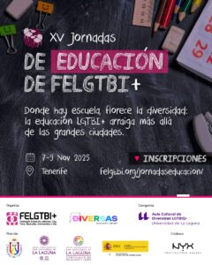 Desde la Asociación LGBTIQA* Diversas nos complace invitarles a participar en las XV Jornadas de Educación, unas jornadas Estatales que se celebrarán, por primera vez, en nuestro territorio y en el cual se abordará la realidad LGBTIQA+ desde el ámbito de la intervención educativa así como