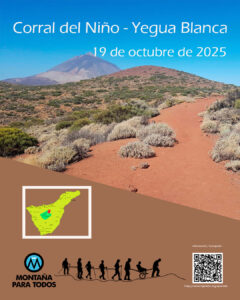 Les traemos una nueva propuesta de ruta. ¡Apúntense! Fecha: Domingo 19 de octubre de 2025 Ruta: Corral del Niño – Yegua Blanca (PN del Teide) Salida de SC: 08.00 h Intercambiador de Santa Cruz, frente a la parada de guaguas del aeropuerto, en la acera