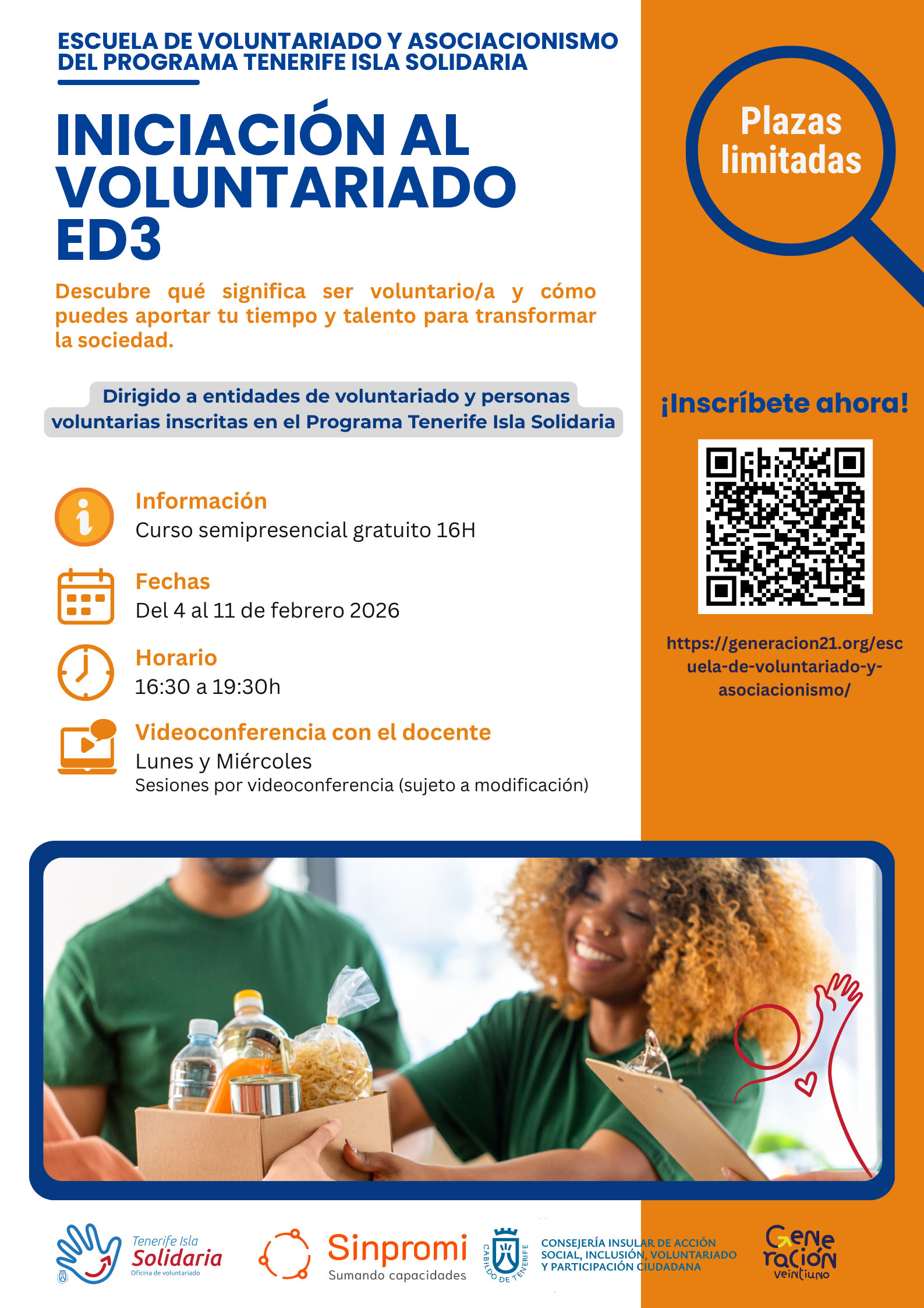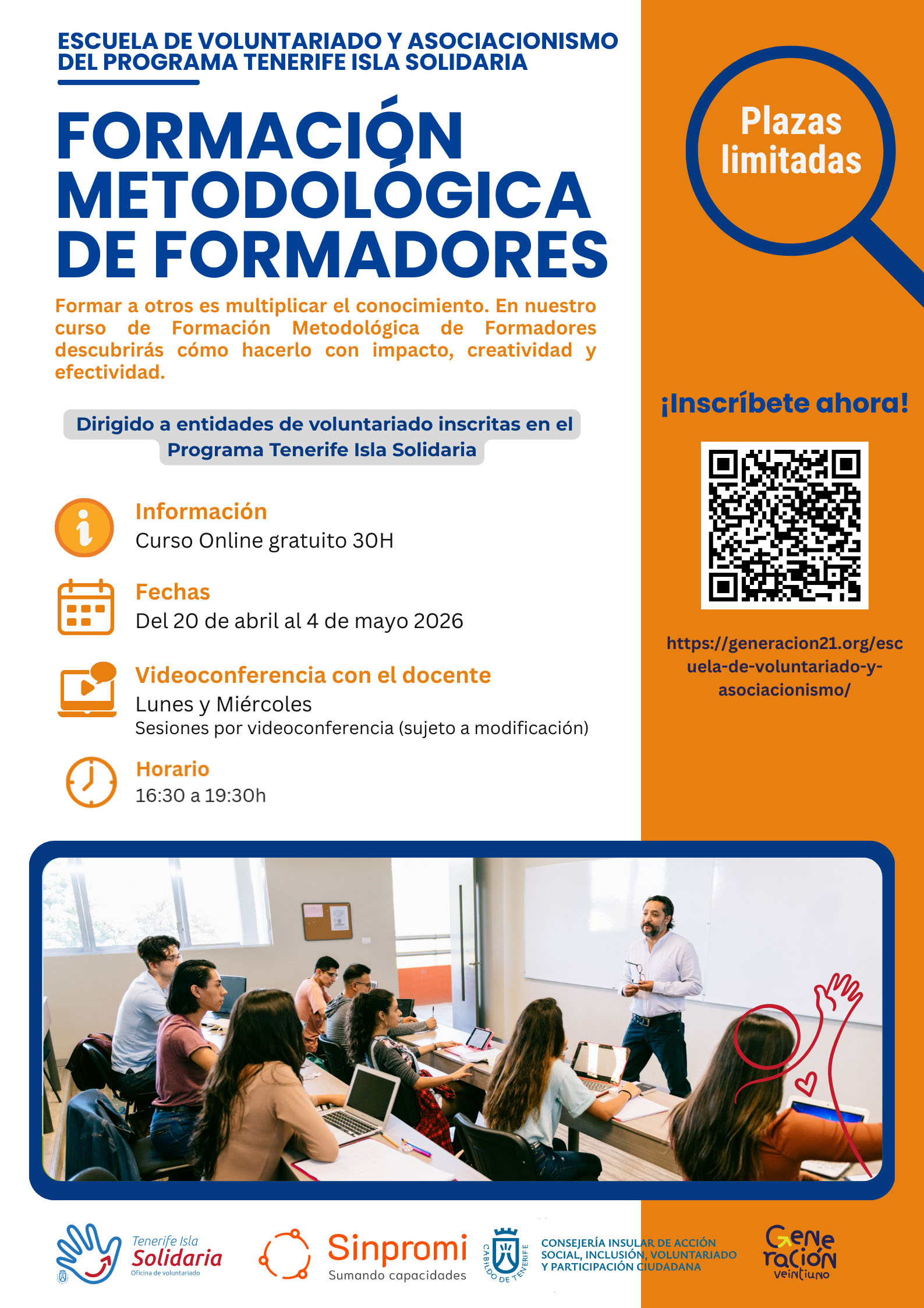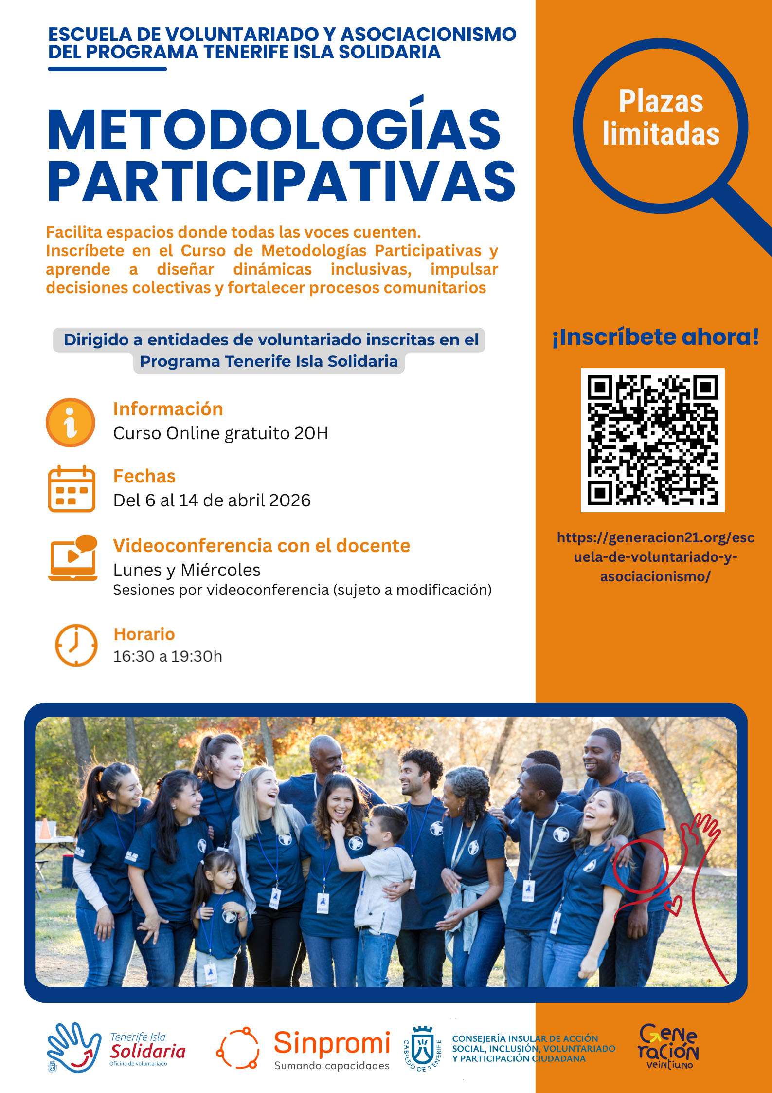 El Cabildo de Tenerife sigue apostando por la formación para las entidades de voluntariado de la isla. Esa es la razón por la que el Programa Tenerife Isla Solidaria ofrece un catálogo de cursos en modalidad online y presencial cada año a través de la Escuela de Voluntariado y Asociacionismo 2025.