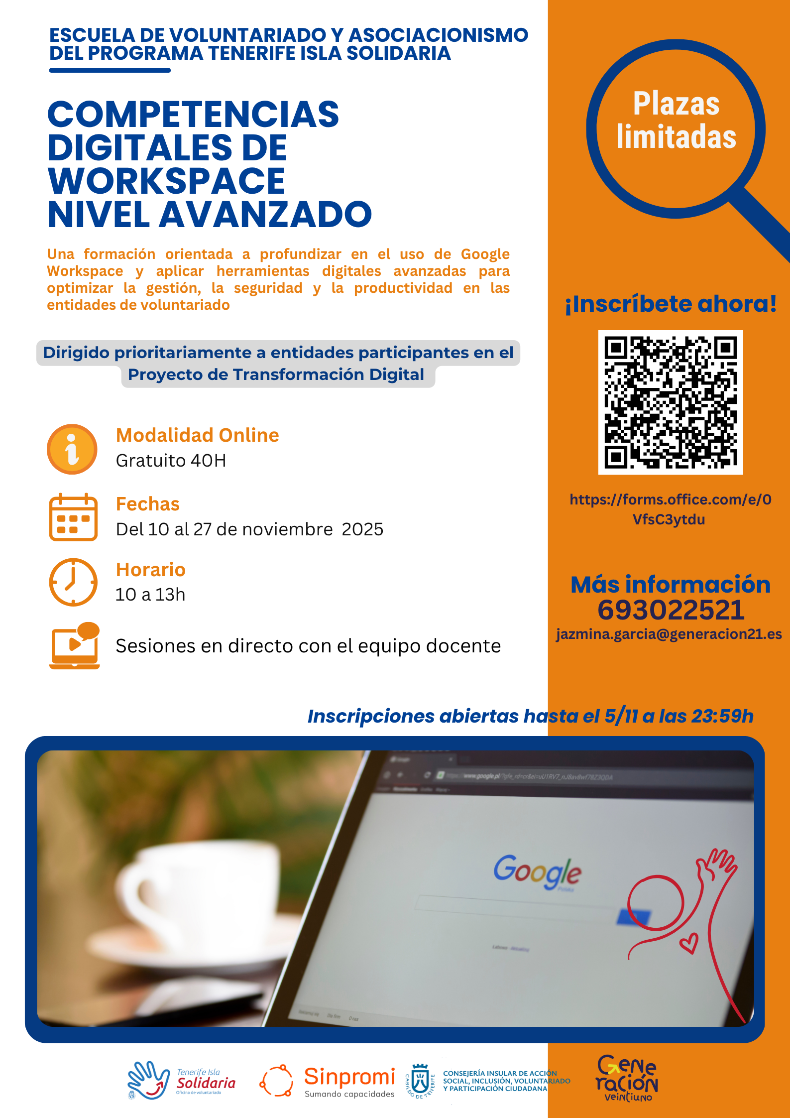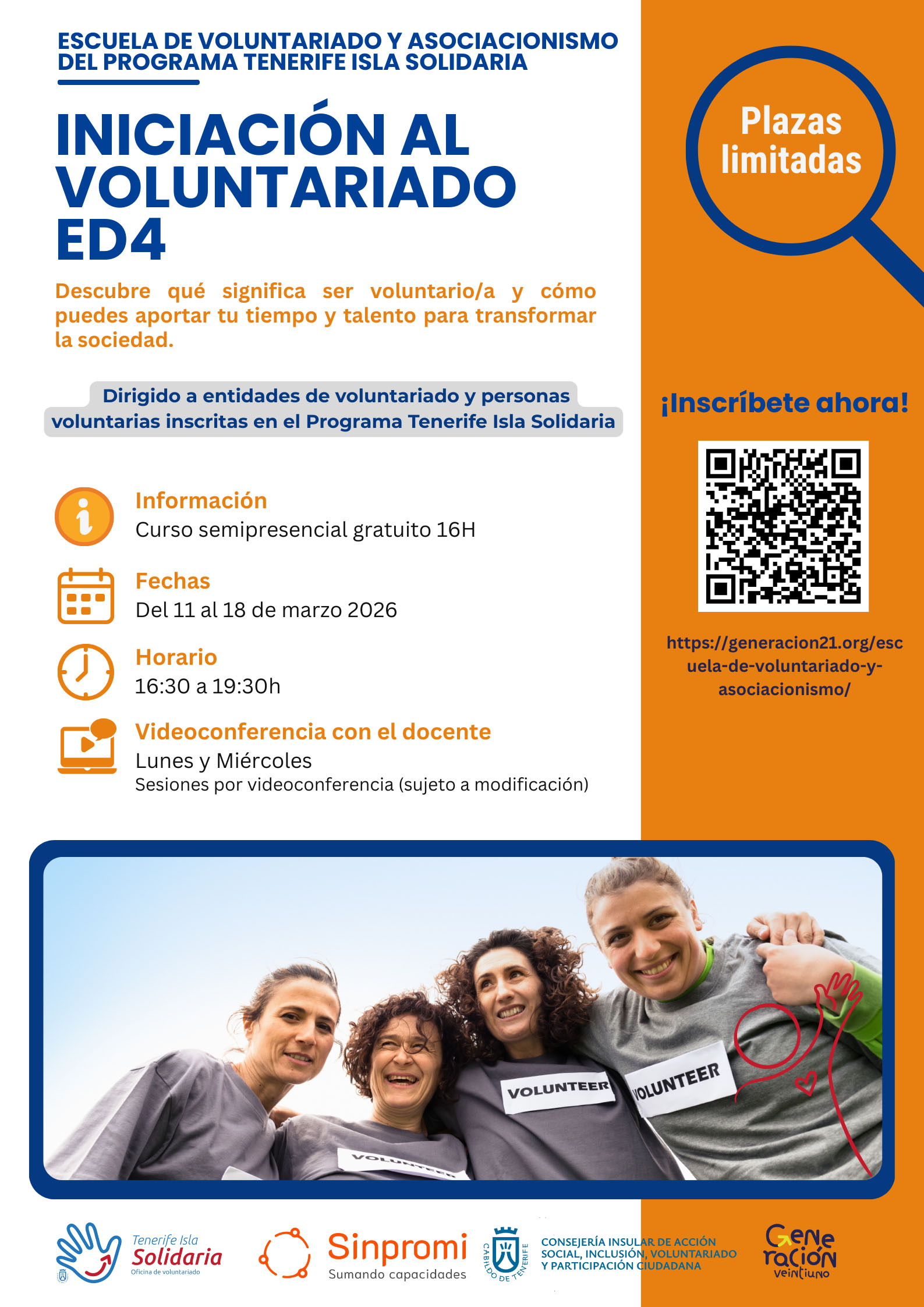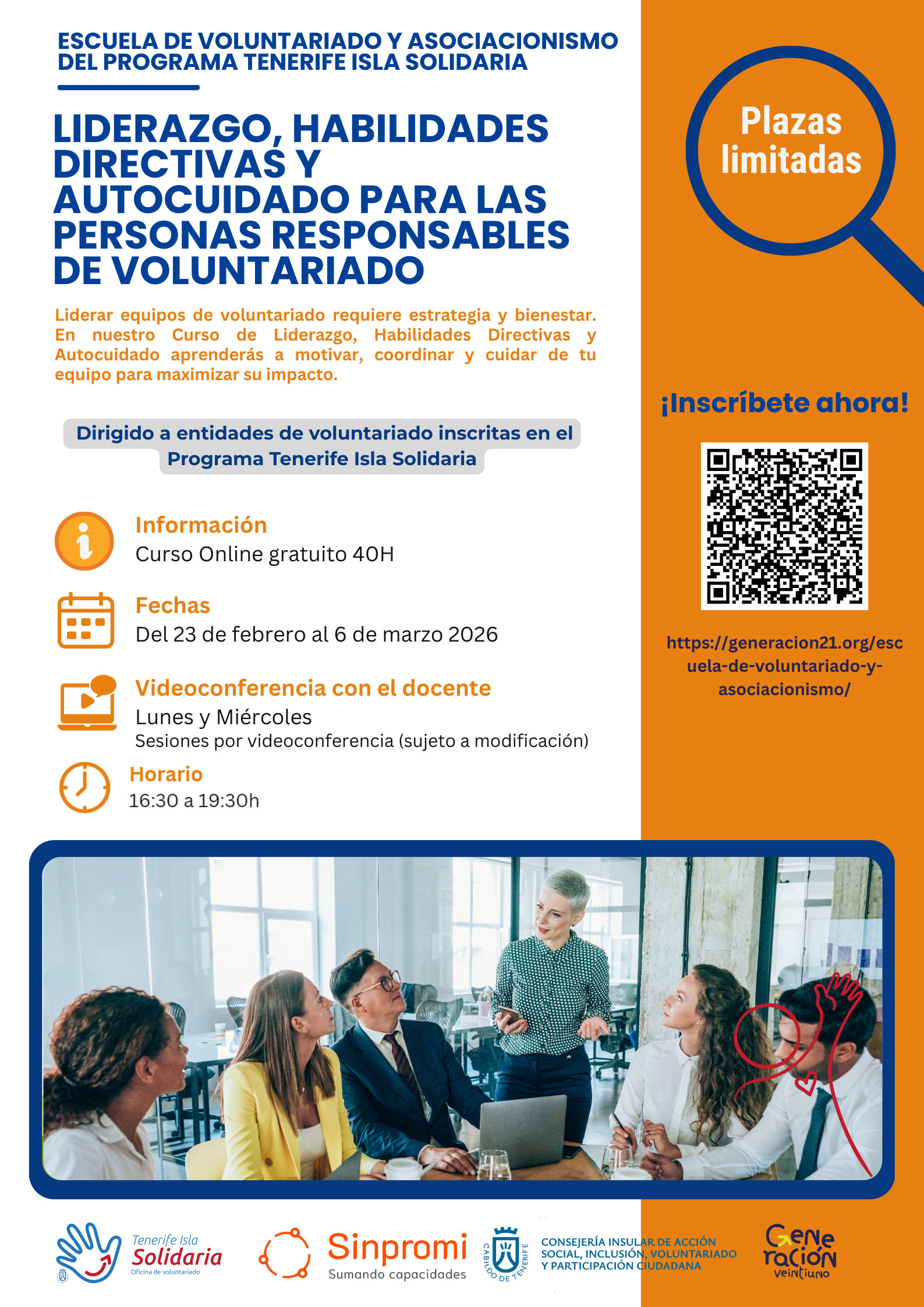 El Cabildo de Tenerife sigue apostando por la formación para las entidades de voluntariado de la isla. Esa es la razón por la que el Programa Tenerife Isla Solidaria ofrece un catálogo de cursos en modalidad online y presencial cada año a través de la Escuela de Voluntariado y Asociacionismo 2025.
