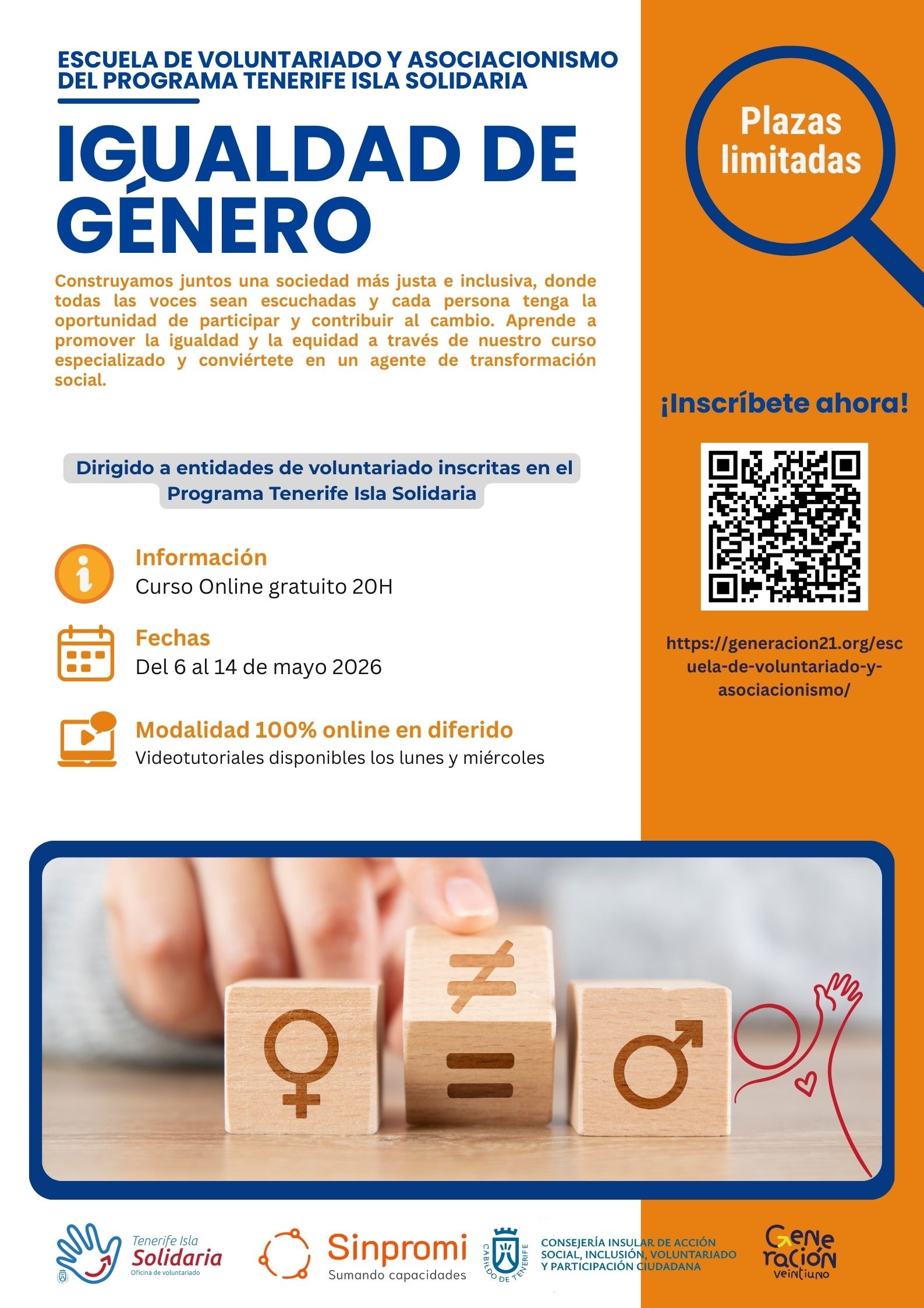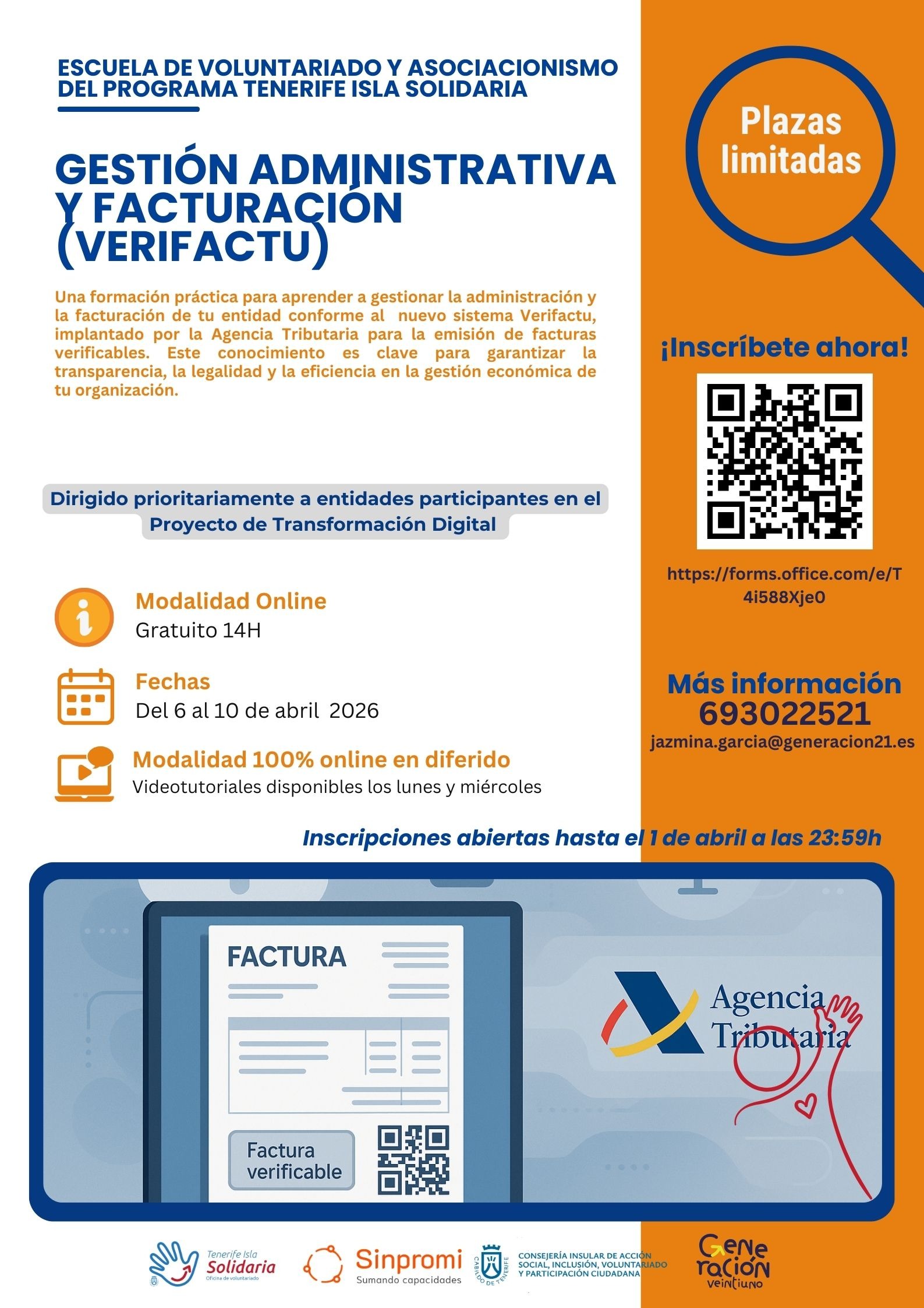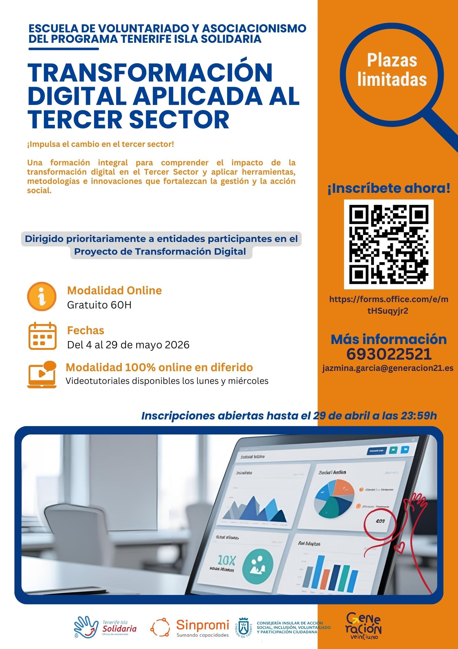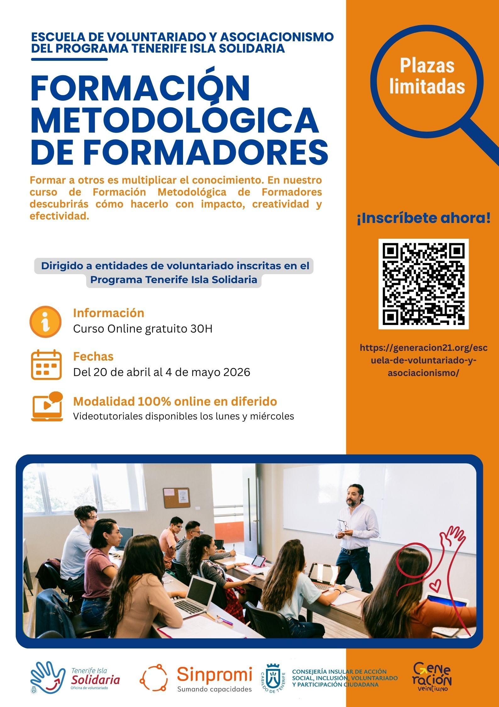 Fecha: Del 26 de enero al 1 de marzo Hora: Libre a elección del alumnado dentro de la duración del mismo Modalidad: Online. PLAZO DE INSCRIPCIÓN HASTA EL 18 DE ENERO Requisitos de acceso: Responsables de voluntariado y personal profesional de Entidades de Voluntariado. Certificación/Diploma: Sello Certifica+ (formación en competencias transversales del voluntariado). |