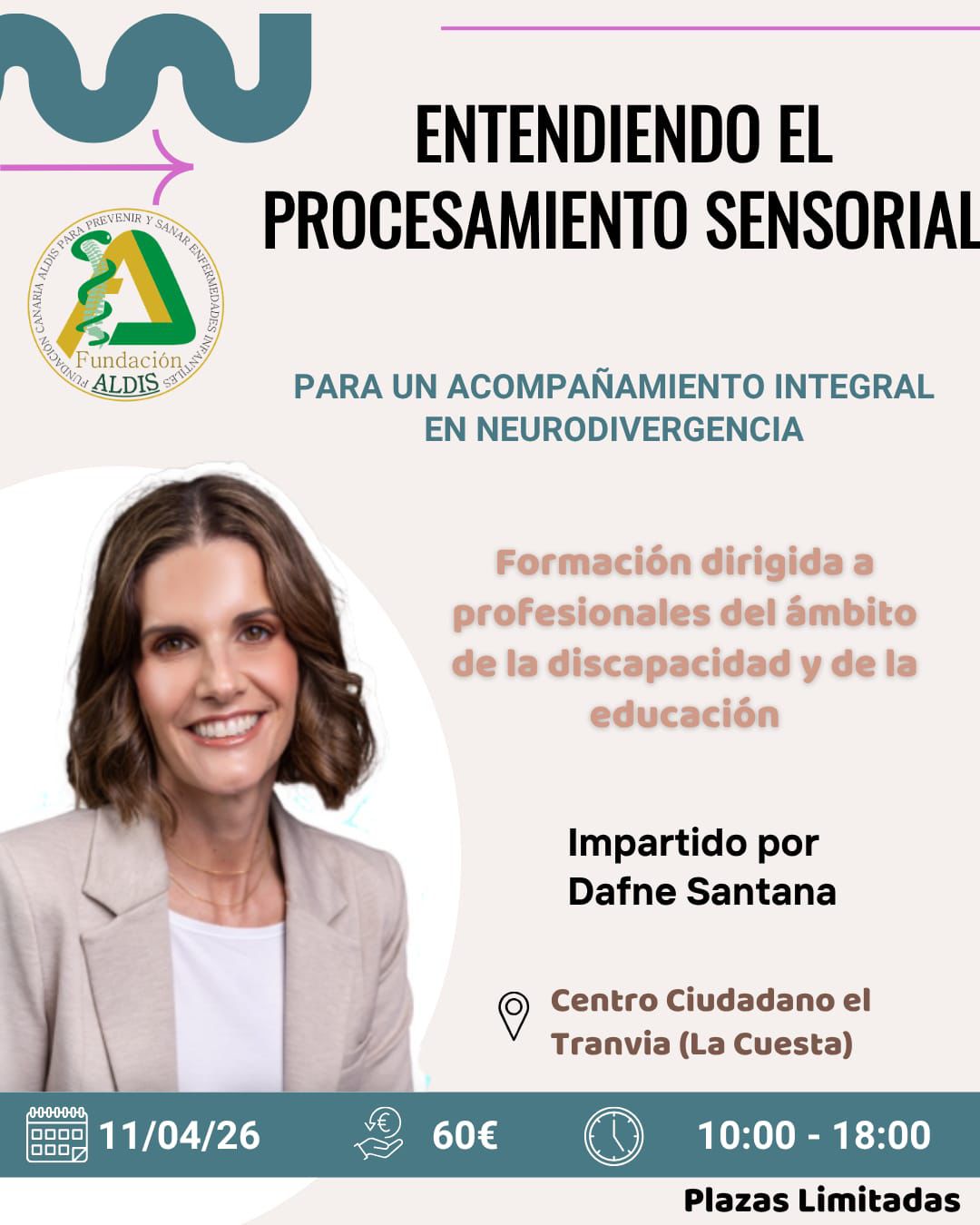 Desde Fundación Canaria Aldis seguimos creando espacios donde aprender, reflexionar y acompañar mejor. Por eso, queremos invitarte a la formación: “Entendiendo el procesamiento sensorial para un acompañamiento integral en neurodivergencia”, de la mano de Dafne Santana.